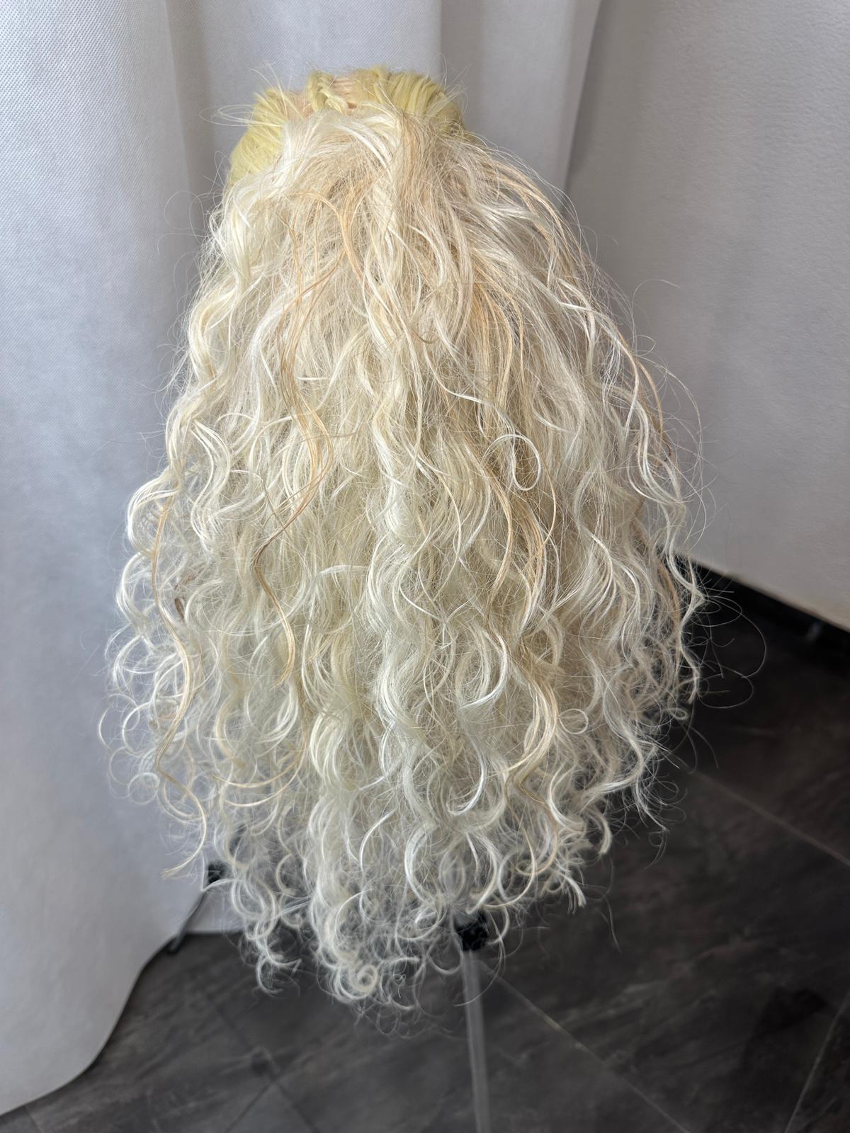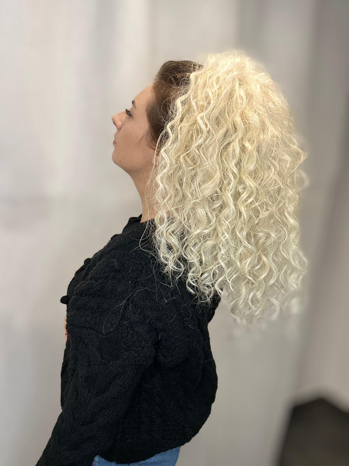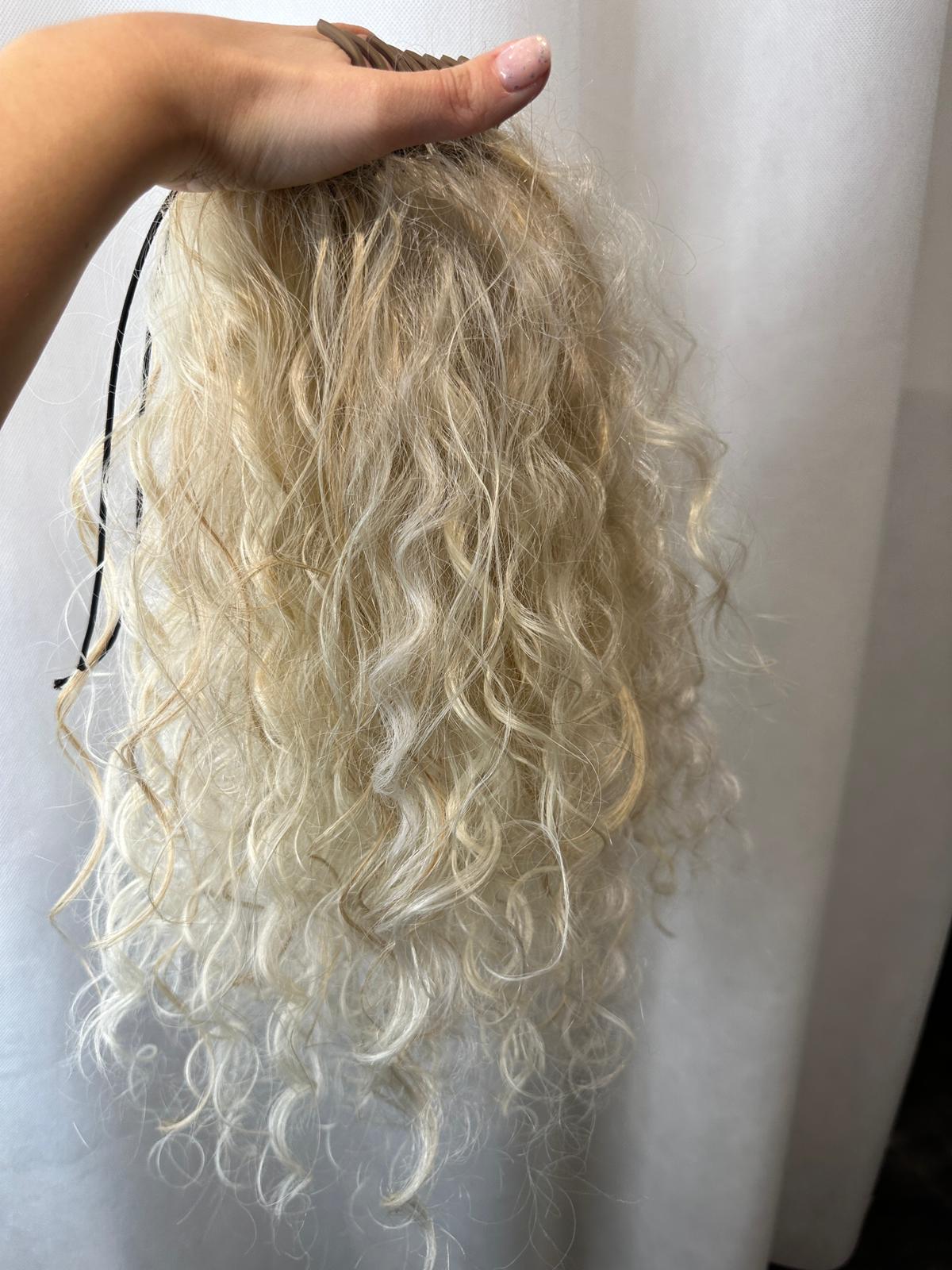 Krab w chłodnym odcieniu blondu z delikatną nutą ciepła, wykonany ręcznie z możliwością drobnej personalizacji. Długość 40–50 cm, lekko cieniowany dla naturalnego efektu.
