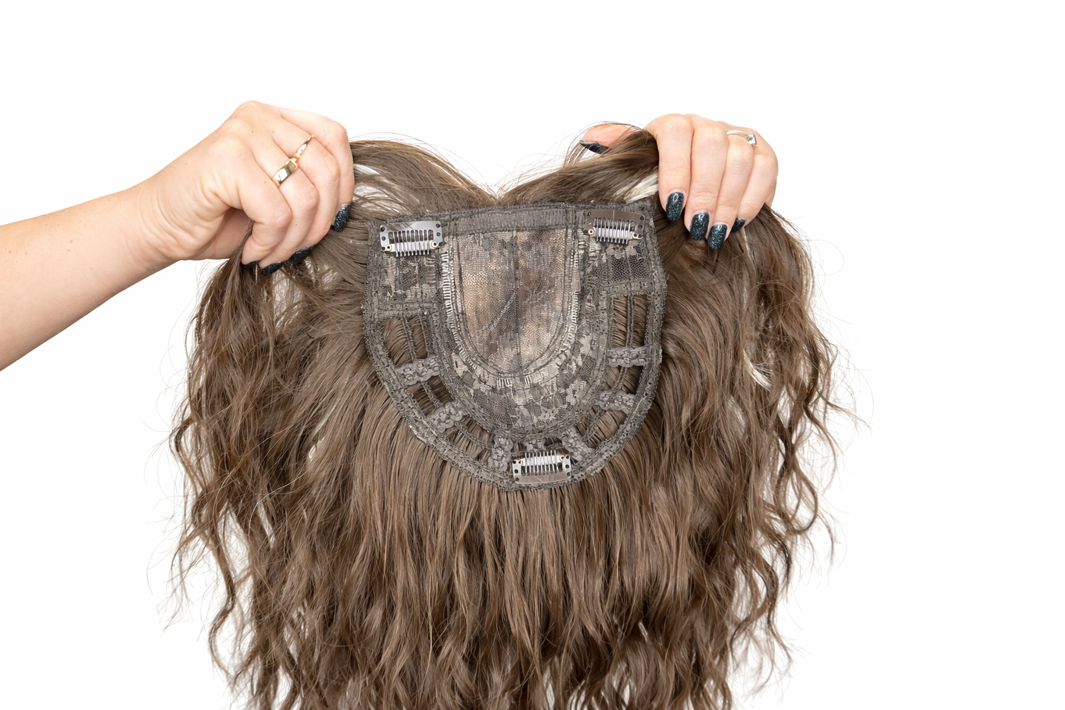 Toper jest zapinany na klip-in, dzięki czemu jest bardzo łatwy w montażu – zakłada się go w kilka sekund, a mocne klipsy zapewniają pewne i wygodne noszenie przez cały dzień, bez kleju i bez dodatkowych akcesoriów. Wykonany z wysokiej jakości włókna syntetycznego, wygląda jak naturalne włosy, miękko się układa i prezentuje niezwykle elegancko.